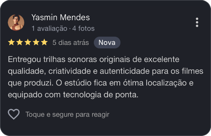 Fundado há 3 anos, o Estudios Rafael Mendes nasceu da paixão pela arte e pela tecnologia. Com uma equipe enxuta, porém altamente qualificada, investimos em equipamentos de altíssima qualidade – de supercomputadores a microfones condensadores renomados e um inovador painel de LED – para assegurar produções audiovisuais e musicais de excelência.